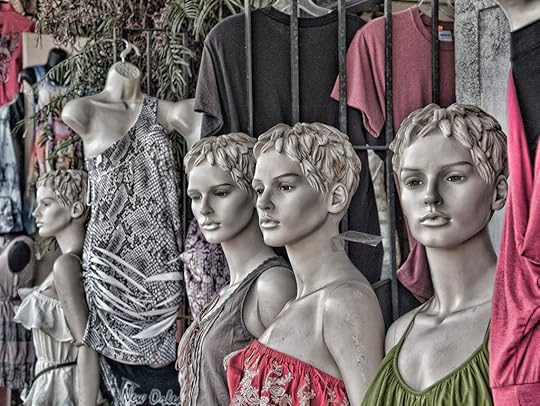 …[Brenig] walked slowly across the square…and looked in a store window where the window dressers were exchanging Santa Clauses and angels for other dummies: ladies in décolleté, their bare shoulders sprinkled with confetti, their wrists festooned with paper streamers. Their escorts, male dummies with graying temples, were being hurriedly placed on barstools, champagne corks scattered on the floor, one dummy was having its wings and curls taken off, and Brenig was surprised how quickly an angel could be turned into a bartender…