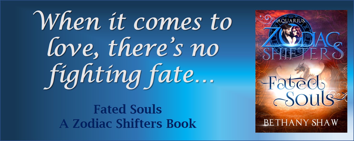 Welcome to Zodiac Shifters I'm pleased to share that the first book in this collection, Fated Souls by Bethany Shaw, is out. My book, Kissed by Fire will be coming in February and will be the long awaited sequel to Kiss the Dragon.