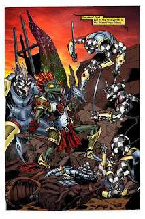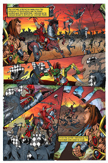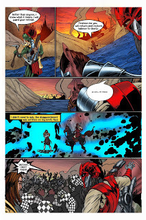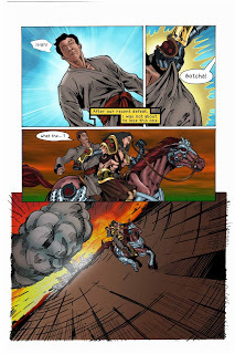 By now you have all seen the cover and pages 1-3. I was tempted to leave you with the cliffhanger at the end of page 5, but I figure you have all waited long enough. Here are completed pages 4, 5, and 6 of Horsemen. They were penciled/inked by Christopher Hanchey, colored by Rich Cardoso and lettered by Jessica Moorman. The team has done an awesome job on these, feel free to drop your thoughts and kind words in the comment section. Enjoy!