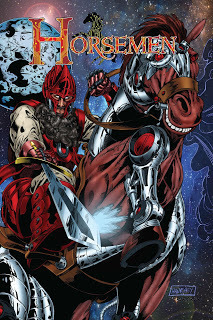 I don't think I've posted all of this in one place yet, so it seemed like high time to do it. Here's a peek at Horsemen's cover and first six pages. Pencils/inks done by Christopher Hanchey, colors by Rich Cardoso, letters by Jessica Moorman and logo by Cary Kelley. Enjoy!