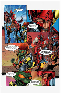 I know you have all been waiting patiently for completed pages of Horsemen. Jessica Moormann has done a great job adding her letters to Rich's colors and Chris' pencils/inks and Josh and I think it is high time to show them off. Without further ado, here are the first three pages of Horsemen. Enjoy!