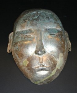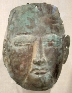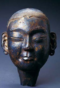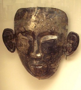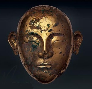 [image error]These are their funerary masks. About which we know no more than we can see. We don't know whether the masks are shamanist in inspiration or Buddhist – they were ardent Buddhists; but they must have learnt to entomb their dead from China? Before their Imperial Period they left their dead in trees on holy mountains, and after three years gathered the bones to burn and bury: along the lines of other shamanists.