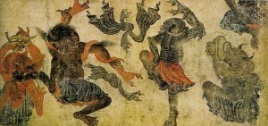 The bandit was mad, but what about the loyal general? He pre-dates the bandit, too, by a century; he operated in the great An Lushan revolt. Zhang had been so determined not to be starved out by rebels that he and his troops are said to have killed and eaten the entire noncombatant population of their besieged city, apparently amounting to twenty or thirty thousand people by the time the city fell. Zhang Xun had encouraged his troops to the necessity of this by first killing and eating his own concubine. In the aftermath of the revolt, the Tang government debated on whether to include him in its honours list of loyalists. Some Tang memorialists now questioned whether Zhang Xun’s behavior had not been excessive and suggested that surrender might have preserved more life. The emperor settled this question with an edict saying unequivocally that Zhang’s actions were undoubtedly meritorious. – Naomi Standen, Unbounded Loyalty.