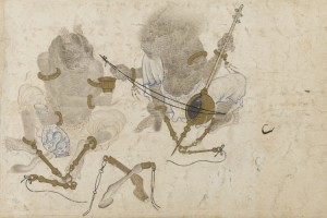 The Great Mongol Shahnama is an unfinished royal copy of the Persian epic. Big in scale, with a work space of 16×12 inches on the page, and 200 paintings intended, of which 57 survive. Nothing this ambitious had been tried. “Since Shahnama iconography was… in its infancy, the painters had no models for scores of the projected images… The… pressure to be innovative propelled the painters into unfamiliar territory in search of fresh inspiration.”