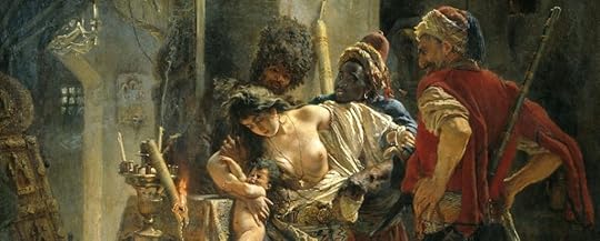 Description from the Commons: ‘The Bulgarian Martyresses, 1877 painting by the Russian painter Konstantin Makovsky, depicting the rape of Bulgarian women by Africanised Ottoman bashi-bazouks during the suppression of the April Uprising a year earlier, served to mobilise public support for the Russo-Turkish War (1877–1878) waged with the proclaimed aim of liberating the Bulgarians.’