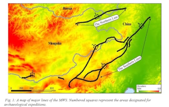 I make them Jurchen walls, and directed against Mongols — original Mongols, in the first place, and Great Mongols as Tchingis Khan sought to unify nomad peoples.