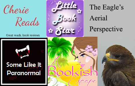 Cherie Reads (book review)A Bookish Escape (book review)Little Book Star (book review)Some Like it Paranormal (book review, character interview)Eagle’s Aerial Perspective (guest post: Writing for an International Audience)