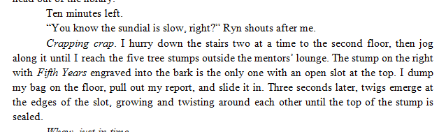 I was recently tagged by Carole Anne Carr to participate in the Lucky 7 Meme, so I thought I'd take a few sentences from the Creepy Hollow book I'm currently working on. So I went to page 7, scrolled down to the 7th line, and copied the next 7 sentences. Not the most thrilling of teasers, but here they are in a screenshot from my Word document :-)