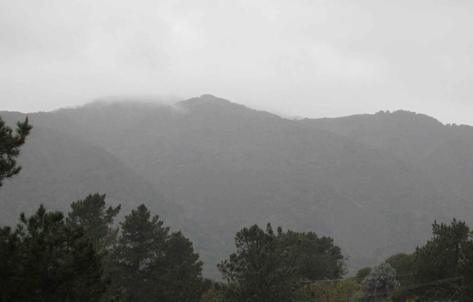 The ridge line looking across Carmel Valley from my house - where the color of the sky as far as we could see was cold gray, bringing a steady downpour of much needed rain as well as a welcome reason to enjoy a lazy day indoors.