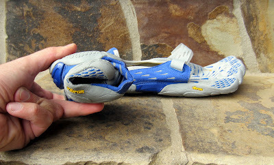 Additionally, the blue areas of the outsole are much thinner than similar regions on the Bikila, which contributes even more to the SeeYa's decreased weight and improved flexibility. The net result of thinner and more flexible construction is that ground feel of the Seeyas is unquestionably the best of any FiveFingers model I've tested. The tradeoff is that you lose a bit of the protective feel the Bikilas had, but for the intended audience of experienced minimalist road runners, this shouldn't be such a big deal.