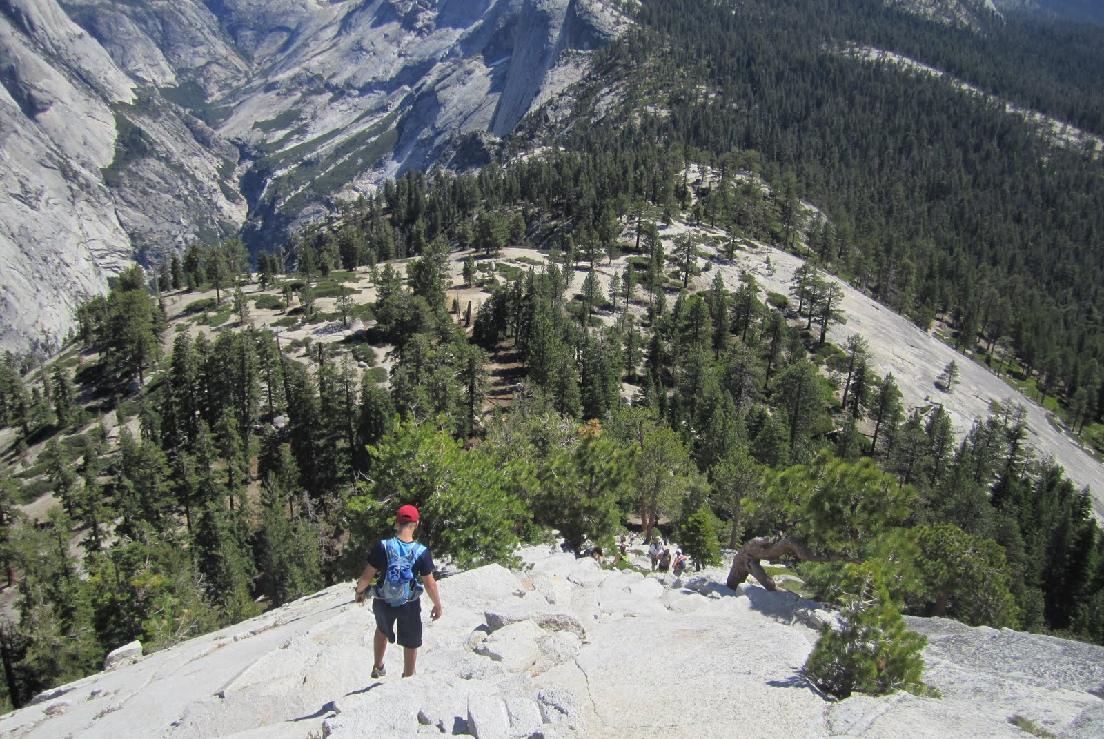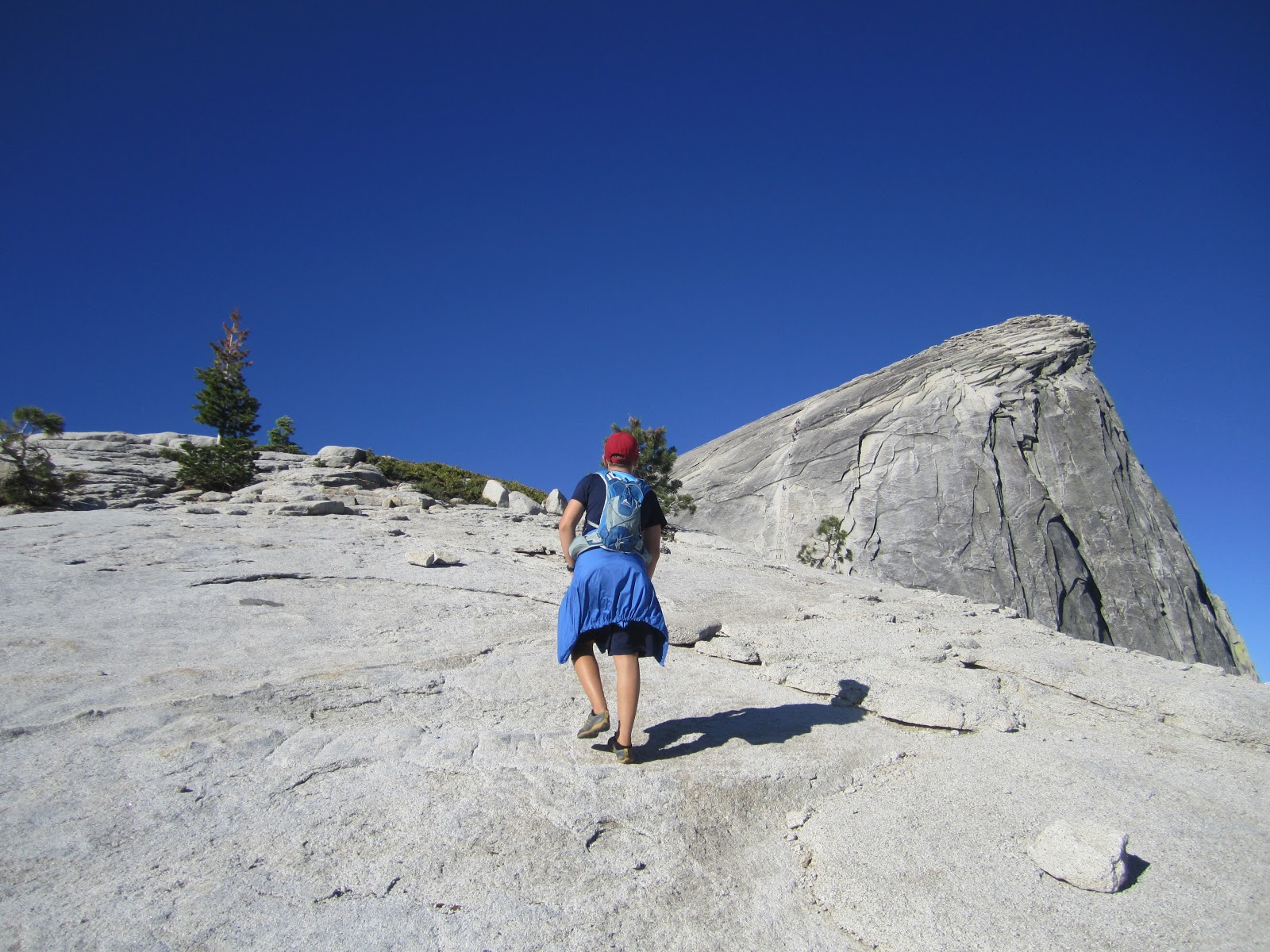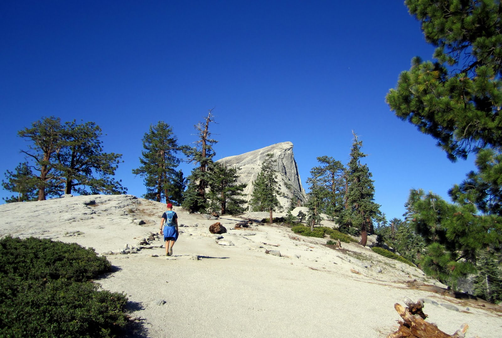 … such as scrambling up over the shoulder of Half Dome, a steep grade where the trail eventually fades into a raw expanse of granite. As long as you're going uphill, you're headed the right way.