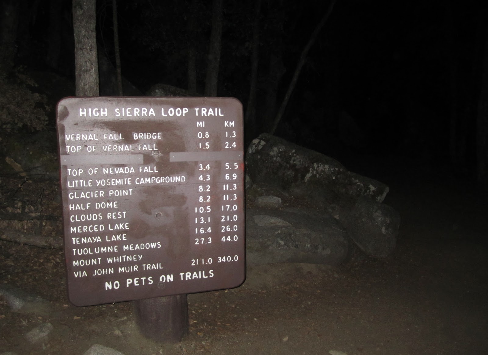 Fortunately, he and I had hiked the Mist Trail a couple of times before, so he wasn't concerned with doing much sightseeing on our journey into the dark.