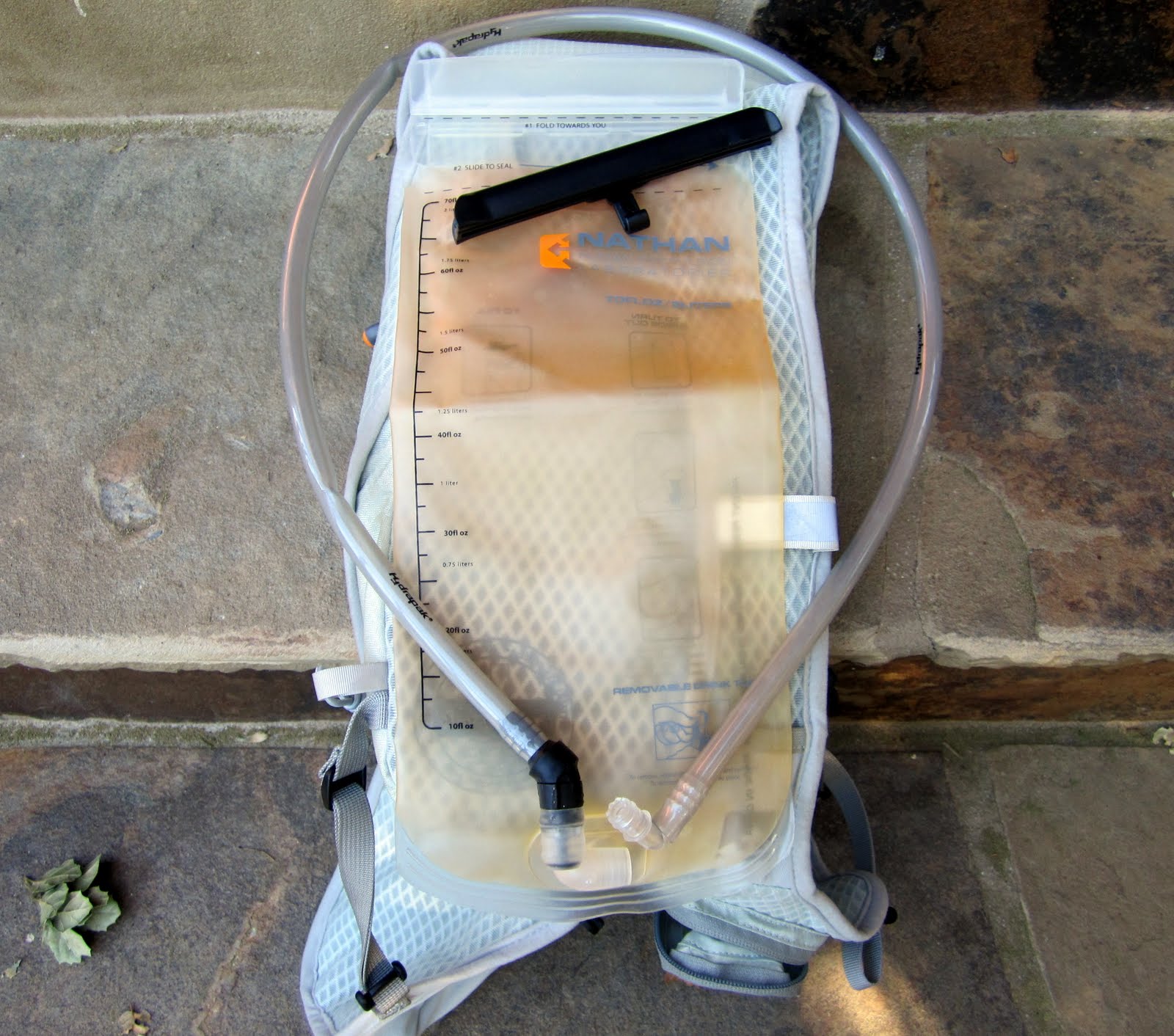 Another big strength of this pack is something I've touched on in previous reviews: Nathan uses Hydrapak reversible reservoirs for their vests – in this case, the same 70-oz fluid capacity as the 020. I'm convinced that Hydrapak is the best in the business – yes, even better than CamelBak – when it comes to fluid reservoirs. They're almost indestructible, super easy to open and close, and they can be cleaned and dried in a snap.