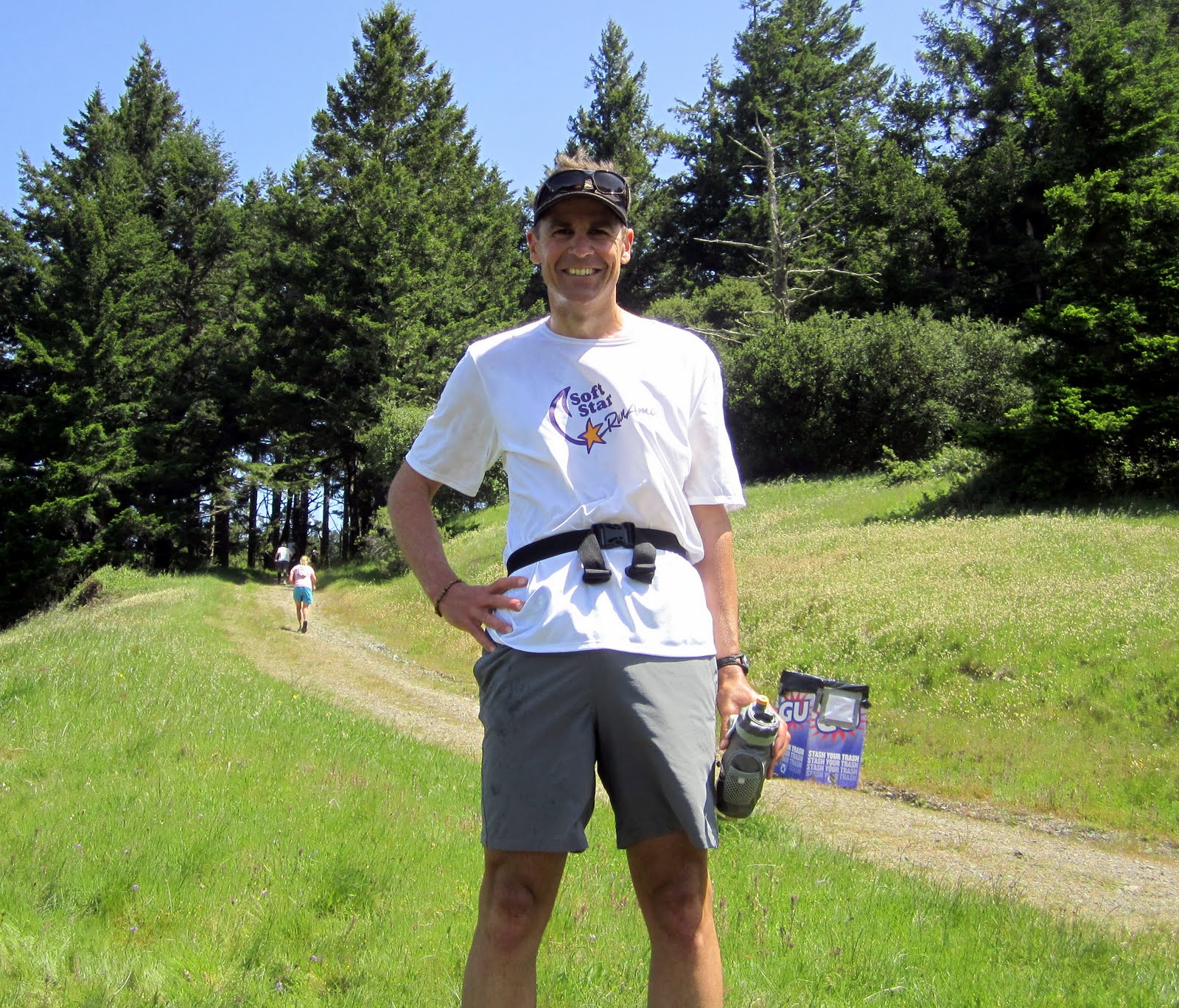 Early in the spring, I discussed my plan with the Soft Star elves, and they were completely on board. What impressed me the most is that back then, it wasn't a sure thing that I'd even wear my mocs at Tahoe – it was more of a "I'm going to test this out for a few months to see if it works" proposal. I wasn't certain if I'd wear the original RunAmoc, or the new Dash, or even some other company's shoe if the moccasin testing didn't go well, and they were 100% supportive of my efforts anyway, no matter how it turned out. They even ordered me the cool logo shirt that I've taken to wearing at my races this year.