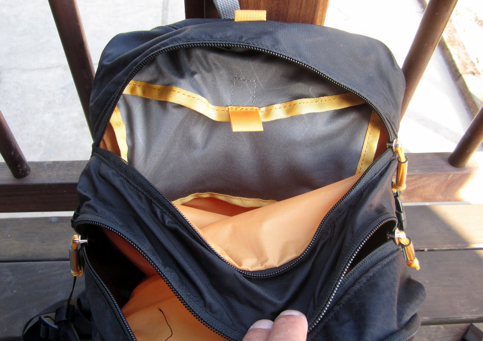 As for the pockets: there's absolutely no problem packing everything you'll need to spend an entire day on the trail. There are two large primary zippered cargo compartments that run the length of the pack, one of which has smaller mesh pockets inside for storage of keys or small valuables, and a zip organizer pocket for credit cards or a wallet.