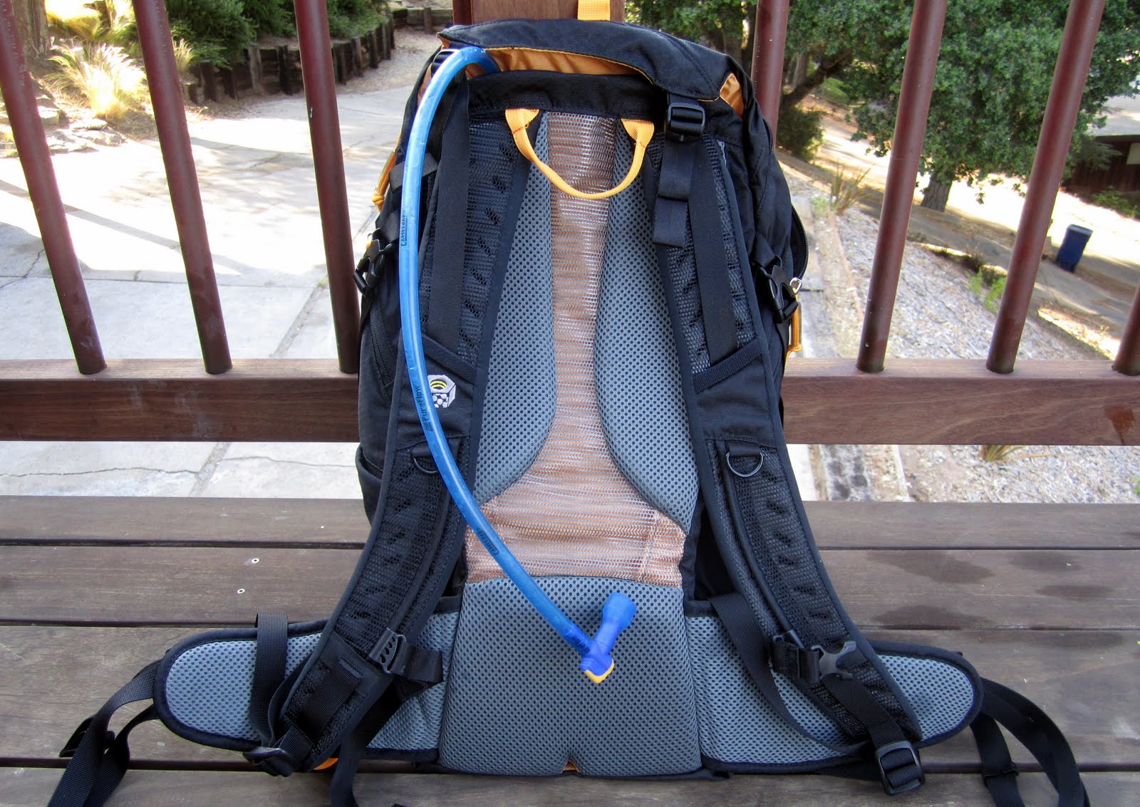 On the back framesheet (the main panel against your back), Mountain Hardware uses a technology called HardWave, which basically means the shape is thermo-formed to stay straight rather than becoming rounded after long-term use, with ridges like an accordion to preserve vertical flexibility along the length of the torso. This is combined with a CoolWave design of raised ventilated foam that creates natural air channels between your back and the framesheet, decreasing heat and perspiration on your backside. This same ventilated foam is present (but thinner) on the main straps as well, providing a very soft interface coming over the top of your shoulder.