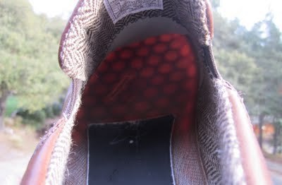 Uppers of the Pau are made from full grain leather, available in Walnut (my version) or a very dark Velvet Brown. There's a thin liner of Dri-Lex merino wool, a naturally wicking fabric that provides comfort even if you're going sockless. Waterproof stretch gussets on either side of the tongue make the shoe very easy to slip on and off. The toe box is naturally roomy, with plenty of space for your toes to spread apart.