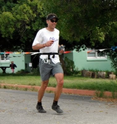 Finishing the Miwok 100K in RunAmocs (photo courtesy of Gretchen)