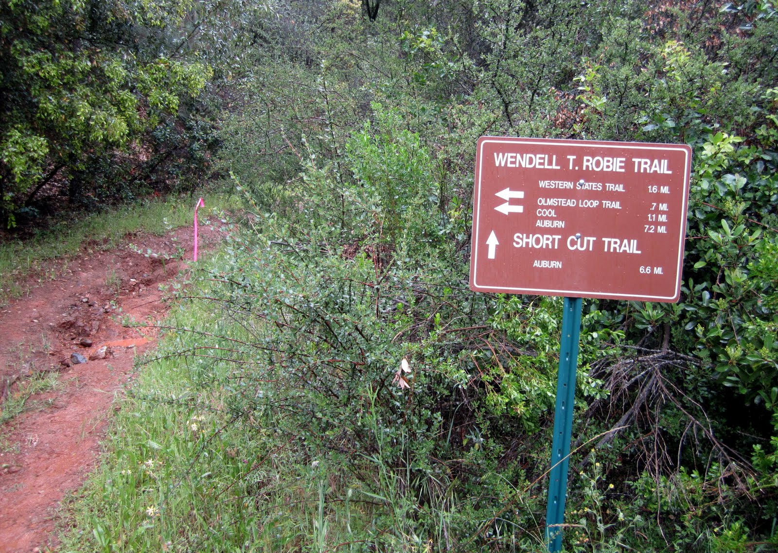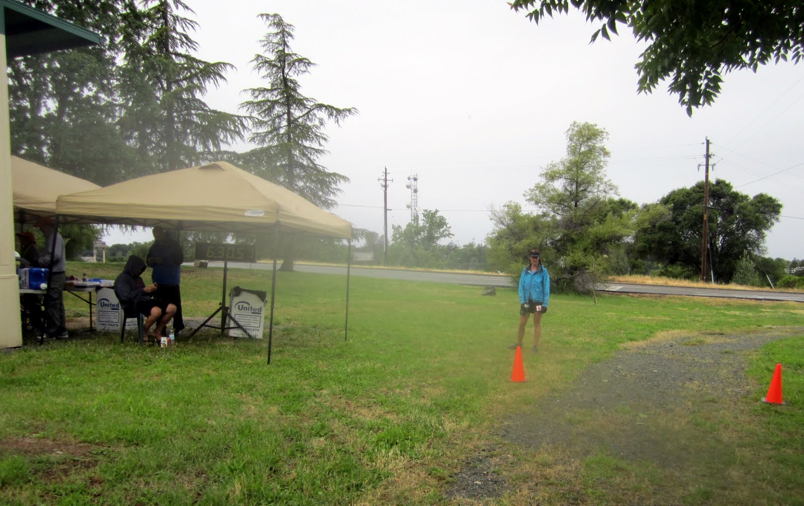 Perhaps if I had time to stand around and think about it, I might not have headed back onto the course. However, since the rain was still falling, I knew that if I wanted to stay warm, I had to keep moving – so I stopped at my car, strapped on a hydration pack, bid farewell to Gretchen until I see her again at Western States … and headed back down that very same trail toward my turnaround destination at Cool, just over 8 miles away.