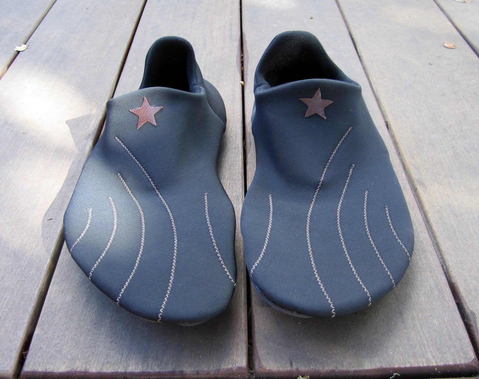 When my first prototypes arrived in the mail, they reminded me of water booties on top, and bear paws on the bottom.
