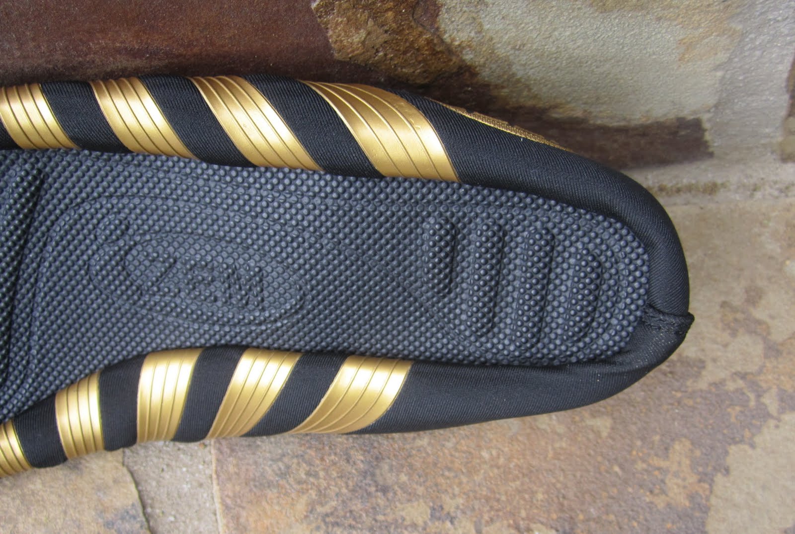Across the top of the upper are stripes called high frequency tech-bands which help prevent slipping of the foot inside the upper – and while this next point has nothing to do with the their performance, my gold-on-black stripes kind of reminded me of something an ancient Egyptian pharaoh might wear.