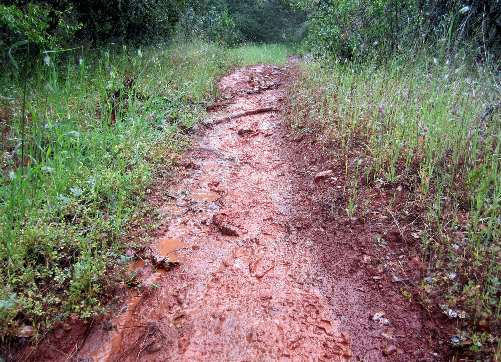 By this time, the constant rainfall of the day had made trail conditions pretty sloppy …