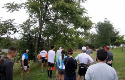 One thing that continually impresses me about ultrarunners is that there's very little drama; before the race, I didn't hear one complaint about the weather, and nobody made it out to be a bigger deal than it was. The only acknowledgement of the rain came from RD Robert Mathis, who told us "I'll keep my announcements to 30 seconds, so you can start running in the rain rather than standing in it." I thought that was considerate.