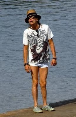 That would be Steven Tyler, of Aerosmith (a band I adored as a kid, by the way) and American Idol fame, doing ... well, exactly what he's doing is uncertain - as is the question of what might have happened to his pants. What's clear, though, is that he's wearing a pair of VIVOBAREFOOTs on his feet.