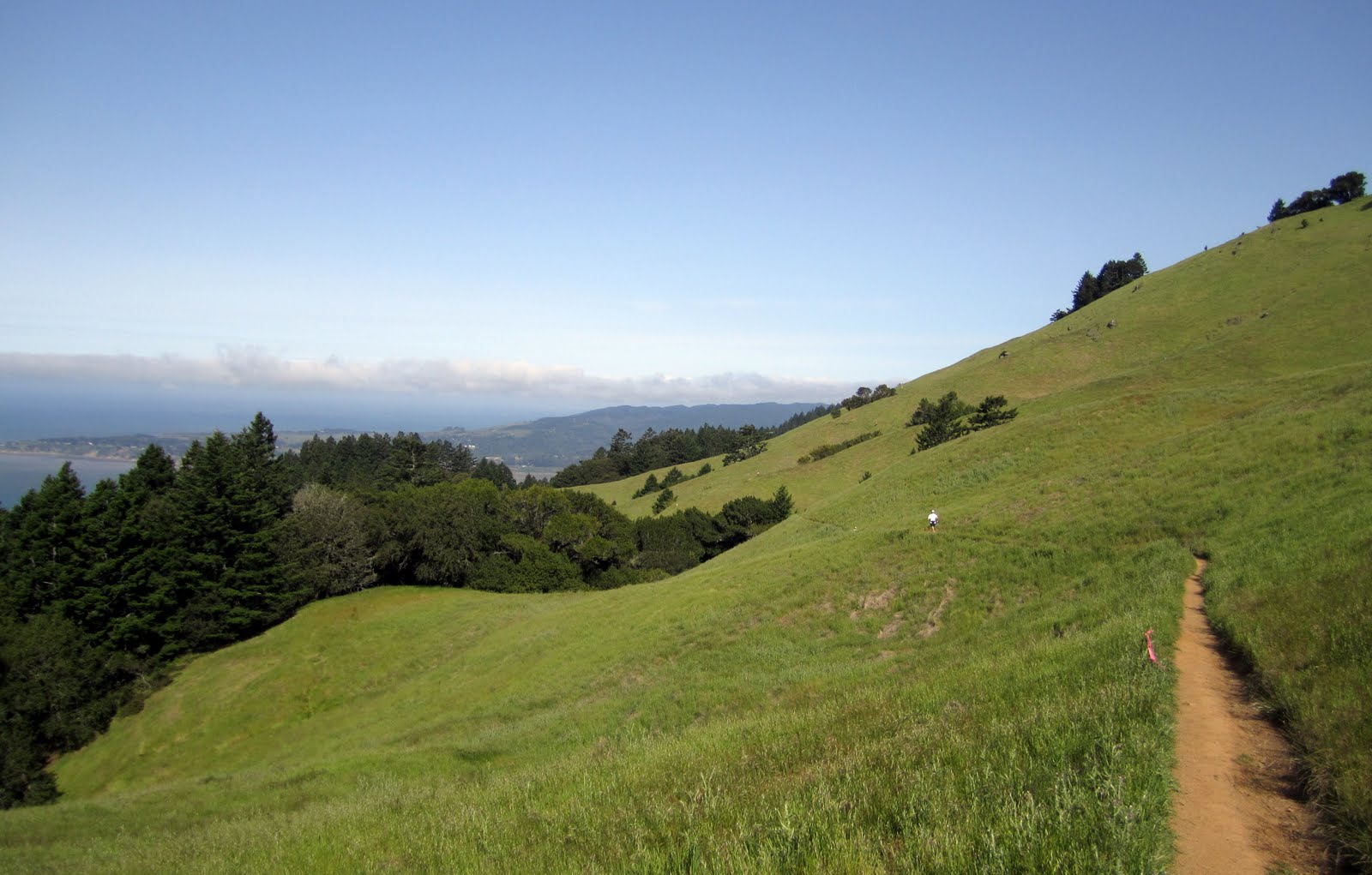 Here's the second landscape that defines Miwok: grassy single-track on the high slopes of Marin County, with a beautiful seascape in the distance below. You can't gaze at the sea for too long, however …