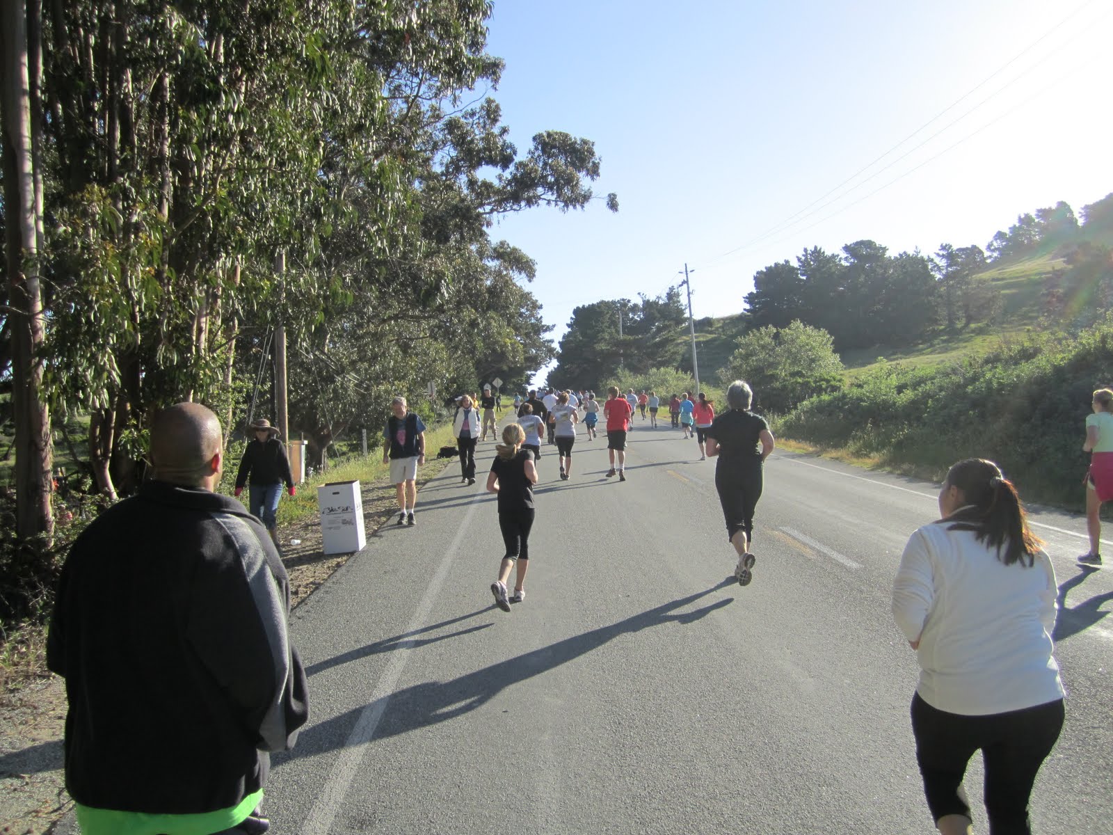 While the out and back is the toughest mental section for me, the mostly uphill 6-mile return through the half-track and single-track toward Pan Toll was without a doubt the toughest physical section. The incline is just steep enough to grind you down, but just gentle enough that you feel guilty for walking it. This is where I struggled the most, and where I ultimately resorted to gameplay with the two runners in this picture.