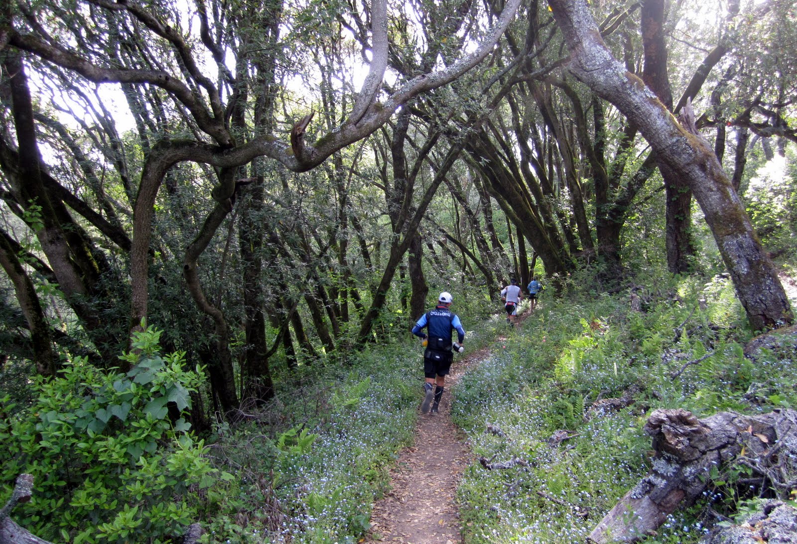That starts shortly after leaving the Pan Toll aid station at mile 20, where you see the first of two landscapes that Miwok is famous for: plush shady trails meandering through giant redwood forests.