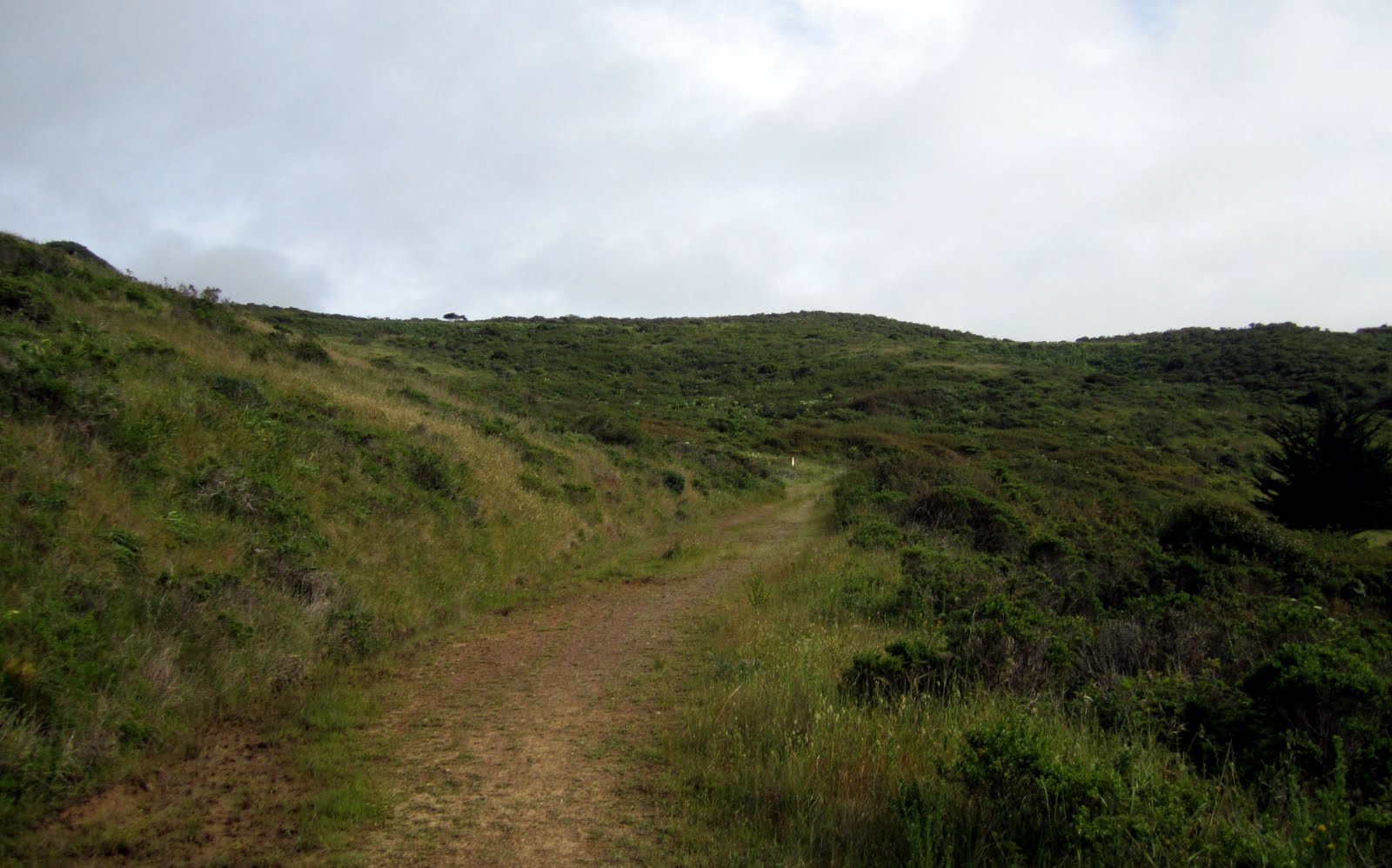… where you start with a nice view of Muir Beach below, and then head higher up the hill …