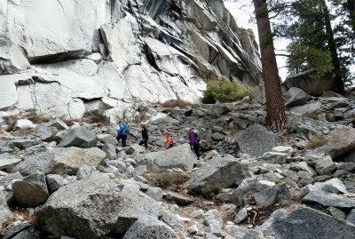 Last fall, we finally decided to go for it, and made reservations to visit the park during this year's spring break. However, we still weren't fully convinced that our youngsters were up to some of the challenges, so after the first of the year we spent a lot of weekends hiking in the hills of Carmel Valley, all the while counseling them that the trails of Yosemite were even steeper, with more tricky footing, and more unpredictably variable weather conditions. We also assured them that all their practice would be totally worth it. They gradually paid their dues on our home trails, and last week was time for them to cash in and have some fun.