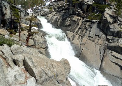 There are two ways to descend from the top of Nevada Fall: via the John Muir Trail, which is the thin line of snow that's barely visible at right-center in the photo above, or to retrace our steps down the Mist Trail. Luckily, we chose to stay out of the snow as much as possible on this hike … because unbeknownst to us, on the following day we'd see a ton of it.