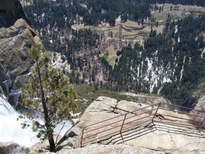 It also helped that by this point we were close to the top of Vernal Fall, where we could dry off above the waterfall spray, and where we had the place completely to ourselves. (Must have had something to do with that closed trail thing down below.) Each of our kids stood on the precipice of the 480' vertical drop – and that's pretty much all it took for them to be sold on Yosemite.