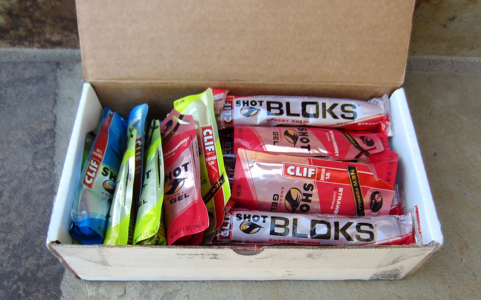 Shot gels and Bloks that I stashed in my drop bags for race day. (I also spent two days before the race