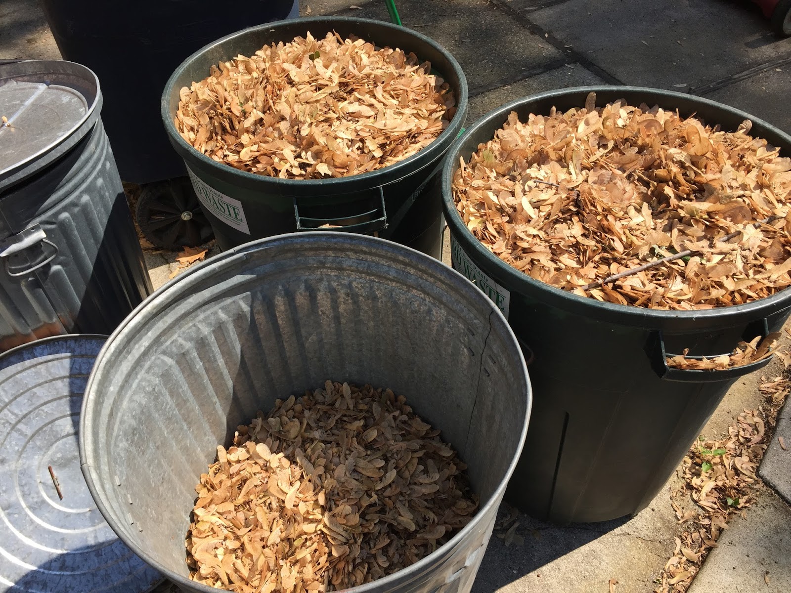 Nobody should ever have that many helicopter seeds. I can't give you an exact quantity, but there are enough here to fill two and a half garbage cans.