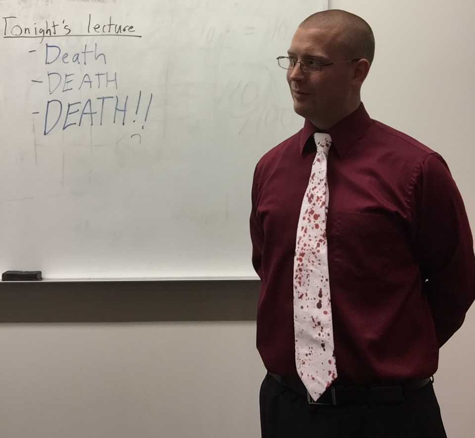 Anyway, I absolutely had to wear my awesome new blood tie for my Halloween lecture. Granted, the lecture had absolutely nothing to do with Halloween, blood, or ties. But as it's my lecture that happens to be closest to Halloween, this is how I'm celebrating.