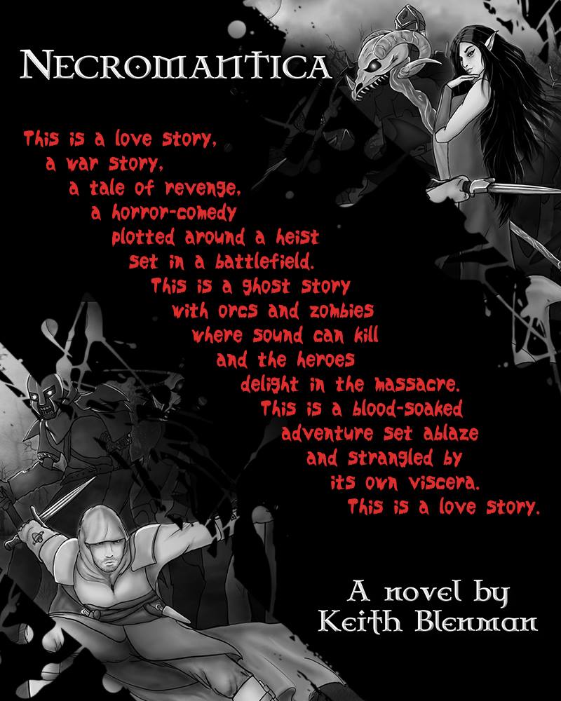 A bulk of Necromantica takes place in the city of Dromn, and again, it's ground zero. Men are making their final stand against orcs and only one side can survive the war. The original draft I created was a ten page action sequence. While I developed a lot of history and character moments around the battle and the heist, it was important to keep that same intensity throughout the novel. So the world starts gruesome, grisly, and on fire. Things only fall apart from there.
