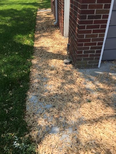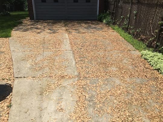 Anyway, my grandparents' backyard has several massive trees in it. Plenty of shade, but come springtime, there tends to be a slight overflow of helicopter seeds.