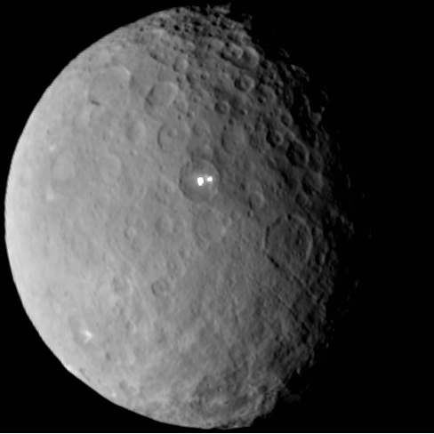 When the bright spot on Saturn's moon, Ceres, was discovered astronomers were considering the possibility that it was composed of ice or salt. Just look at how much it's reflecting the Sun's rays.