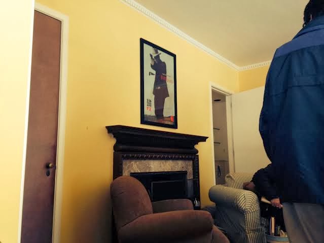 I sat down for a few minutes on a sofa in his living room. And from there I watched the people come and go. I saw them pick through his books and examine furniture. He had a Justified poster hanging over the fireplace, and I wondered how often he sat right where I was, taking in what's quite possibly the most celebrated achievement of his career. I imagined the sort of guests he'd have over. Or if he read on the couch often, or preferred some of the other furniture. I wondered if he used the fireplace all winter or seldom bothered with it.