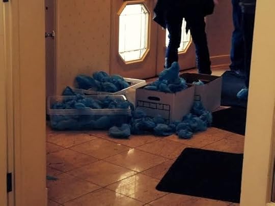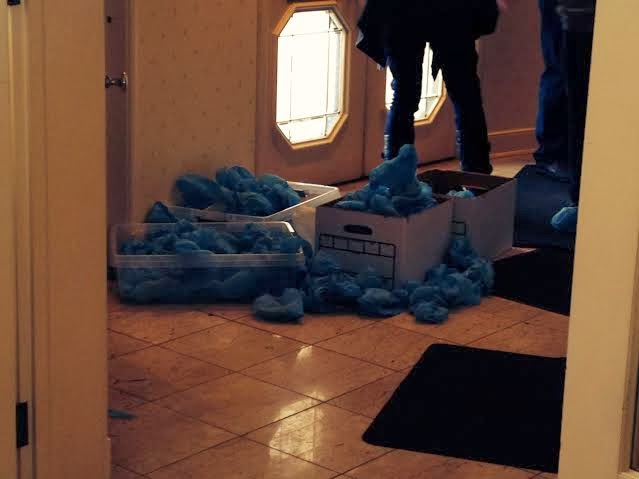 Note the highly attractive blue booties I was wearing so as not to leave shoe prints on the floor. Just to give you an idea as to how much traffic was going through that house: