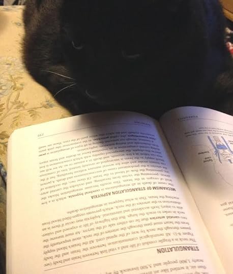 Page one hundred and fifty nine of Forensics for Writers , which goes over the details of strangulation.