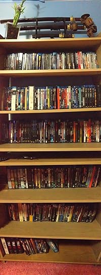 And the plant thrived at the top of my movie collection for quite some time. A collection I've had to sell about half in the past year. What can I say, I was overzealous with the concept of blu rays and HD movies in recent years. I always have been really. When my older brother and I reached our teens, he started collecting CDs and I started collecting VHS tapes. I love movies. I'm passionate about film. Why I don't post more movie reviews and discussions in this blog I have no idea. But I've always been an avid collector. To the point that it's been discussed in therapy and traced back to my early childhood. When I was a kid, my aunt and uncle had a movie collection my brother's and I would frequently gawk at. They owned, seriously, every movie ever freaking made. And they were arranged in what seemed like its own wall around the stereo cabinet. Each one in a special plastic case, properly labelled and possibly alphabetized (I was pretty young so the alphabet was still something of a mystery).