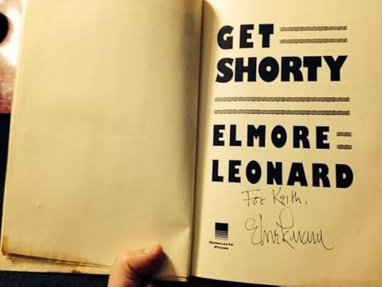Well, true to form, any time I'm in a group of people or even the slightest bit nervous for any reason, I choke. Or go into function-only mode. My capacity to speak is pretty much lost. And in the event that I do speak, it comes off awkward and bizarre. When my turn finally arrived and I finally got to meet the man who was a major influence on my entire life, he looked at the old, beat up book with a degree of puzzlement. And when I should've said, "I've checked that book out twice and then just kept it. I've kept it close for half my life. You were a major influence on me and writing, and it all started with Get Shorty," I instead said something slightly less cunning like, "Um."