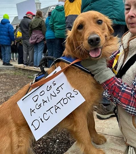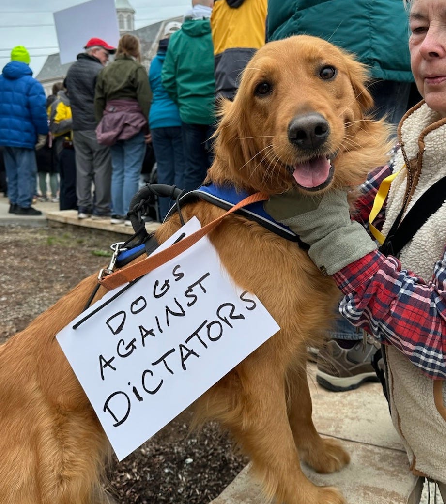 Bella had a sign too, of course, which made her popular with the protestors who wanted to take her picture and pet her. It was, “Dogs against Dictators,” my tongue-in-cheek swipe at the entire ridiculous situation in which we find ourselves.