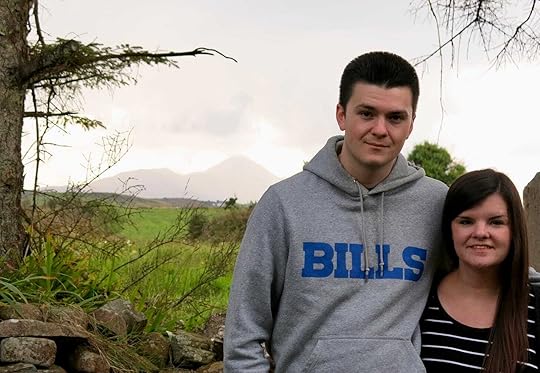 Anna and Tim on the farm with Croagh Patrick in the background.