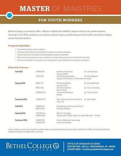 Masters of Ministries degree for youth workers at Bethel College (Indiana)