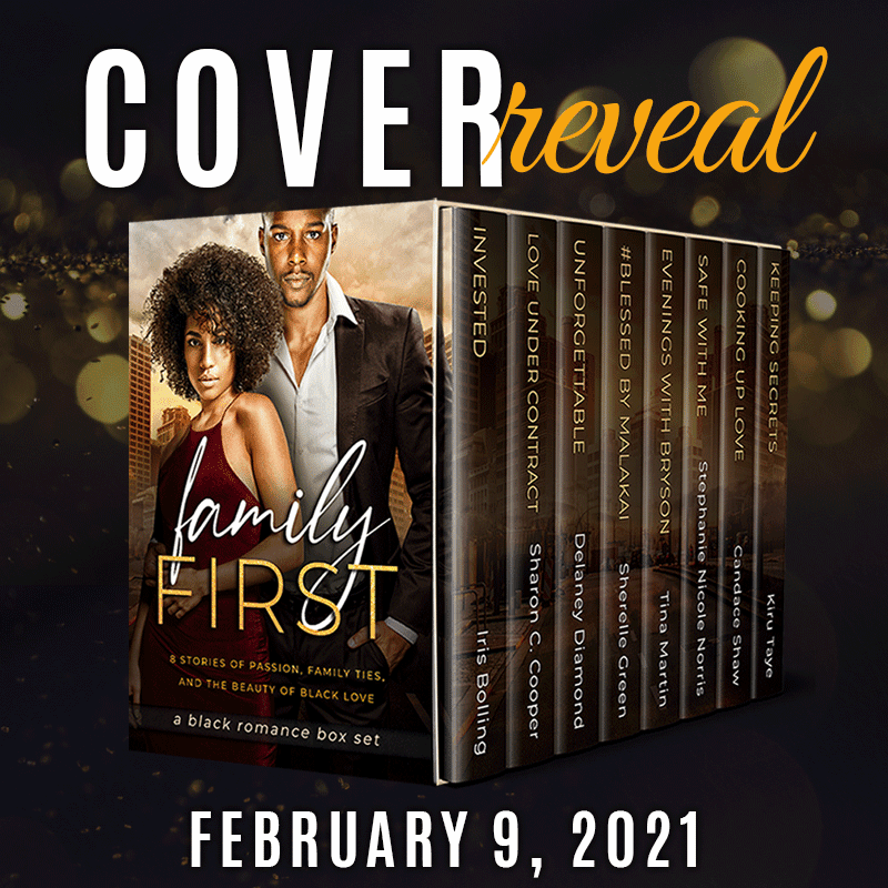 INVESTED by Iris BollingMyles Dunning, the thirty-five-year-old CEO of Dunning Bank and Trust, is fighting off one takeover attempt after another to save his family's historical bank. Chrystina Price is a voluptuous, lovable, powerhouse, whose sole purpose in life is too uplift and protect the man she has loved from the first day they met. When the integrity of the family always comes first is it worth Investing in love.LOVE UNDER CONTRACT by Sharon C. Cooper, Award-winning and bestselling authorSumeera Robinson refuses to settle for less than she desires, even if what she craves is the sexy Nicolas Jenkins-Moore. She’s ready for marriage and a family, but his five-year plan has those items at the bottom of the list. When Sumeera walks out of his life, Nicolas realizes what he's lost and will stop at nothing to win her back.UNFORGETTABLE by Delaney Diamond, USA Today Bestselling AuthorIvy Johnson is stunned when Lucas Baylor makes an appearance at her family’s event in Seattle. When her deception is revealed, it throws his life into a tailspin and forces them to face the truth of their feelings for each other—feelings they’ve both tried in vain to forget.#BLESSED BY MALAKAI by Sherelle GreenOvernight, Malakai Madden becomes a social media legend after the #BlessedMyMalakai hashtag starts trending. Avery Nightingale is the perfect image consultant to get his life back on track. However, avoiding their explosive chemistry proves to be a bigger distraction than either of them bargained for.EVENINGS WITH BRYSON by Tina Martin, Three-time Emma Award Winner, including Author of the Year, Book of The Year Award Winner, multiple Amazon #1 new releasesKalina Cooper doesn't believe in love since watching her father walk out on her mother years ago. But when she meets Bryson Blackstone in her aunt's cafe, he challenges everything she thinks she knows about life and love and reveals secrets about her family that she otherwise would've never known.SAFE WITH ME by Stephanie Nicole NorrisSamiyah Manhattan is mourning the death of her six-year marriage when she vows never to trust men again. Celebrity ex-boxer turned business mogul, Jonas Alexander Rose never takes women too seriously. However, when he meets the beautiful Samiyah mulling over a mimosa, Jonas is overwhelmed by the heart throbbing heated attraction, and now he is on a mission to explore this thing called love.COOKING UP LOVE by Candace ShawWhen Shelbi Arrington foregoes her medical residency, the last thing she’s searching for is love. However, that’s just what the doctor prescribes when she meets chef Justin Richardson, who is leery of doctors because of his mother’s death years ago. As their relationship heats up, Shelbi learns of a shocking revelation which may extinguish their flame.